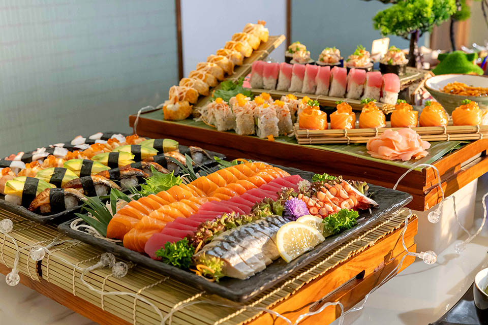 บุฟเฟ่ต์ธีมซีฟู้ด ทุกคืนวันเสาร์ ตั้งแต่เวลา 18.00 น. – 22.30 น. ราคา 2,490 บาท++ ต่อท่าน รวมเครื่องดื่มไม่อั้น