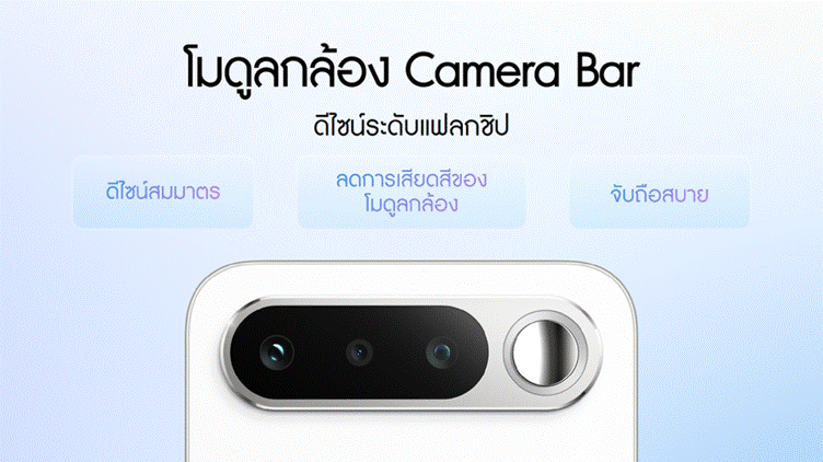 นอกจากในแง่คุณภาพของภาพถ่าย ดีไซน์ Camera Bar แบบแนวนอนยังช่วยกระจายน้ำหนักตัวเครื่องให้สมดุลยิ่งขึ้น วางบนโต๊ะได้อย่างมั่นคงไม่มีกระดก และเมื่อจับถือแนวนอน ไม่ว่าจะเล่นเกมหรือดูซีรีส์ ก็จับได้ถนัดมือ ถือได้อย่างมั่นคง และไม่รู้สึกเมื่อยเมื่อใช้นาน ๆ ตอบโจทย์คนที่ใช้งานมือถือหนัก ๆ ตลอดวันได้เป็นอย่างดี