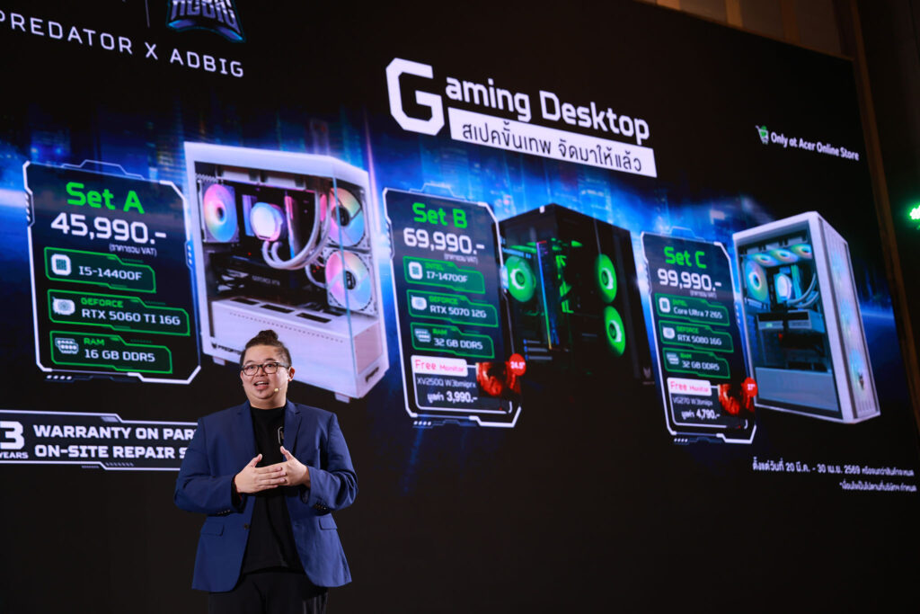 อีกหนึ่งไฮไลต์สำคัญของปีนี้ คือโปรเจกต์ Predator x ADBIG ที่เอเซอร์ร่วมมือกับ ADBIG ผู้เชี่ยวชาญด้านคอมพิวเตอร์ประกอบ (Custom PC) เพื่อพัฒนา Custom DIY PC ภายใต้แบรนด์ Predator ที่คัดสรรและออกแบบสเปกของแต่ละรุ่นอย่างพิถีพิถัน เพื่อให้ได้สมดุลด้านประสิทธิภาพที่เหมาะสมกับผู้ใช้งานในทุกระดับ ตั้งแต่ผู้เริ่มต้นไปจนถึงผู้ที่ต้องการพลังประมวลผลระดับสูง พร้อมวางจำหน่าย เฉพาะผ่าน Acer Online Store เท่านั้น เพื่อสร้างประสบการณ์ใหม่ให้กับคอมมูนิตี้เกมเมอร์และผู้ใช้งานสาย DIY พร้อมขยายการเชื่อมต่อแบรนด์กับผู้บริโภครุ่นใหม่มากยิ่งขึ้น