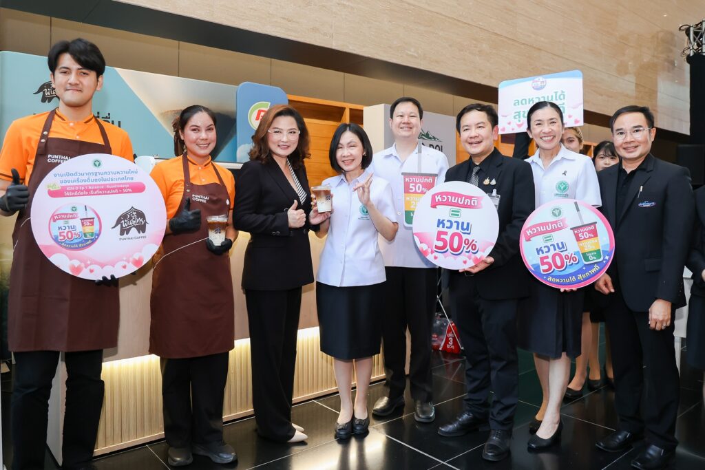 บริษัท กาแฟพันธุ์ไทย จำกัด ก้าวสู่การเปลี่ยนแปลงครั้งสำคัญของวงการเครื่องดื่มไทย ผนึกกำลังกับ กรมอนามัย กระทรวงสาธารณสุข พร้อม 8 แบรนด์เครื่องดื่มชั้นนำ ร่วมกันขับเคลื่อนมาตรฐานความหวานใหม่ “หวานปกติ เท่ากับ หวาน 50%” นำร่องปรับสูตรเมนู ‘พันธุ์ไทยคอฟฟี่เย็น’ ก่อนขยายผลสู่เมนูใหม่ เพื่อปฏิรูปพฤติกรรมการบริโภคของคนไทย สู่การมีสุขภาพที่แข็งแรง สอดคล้องกับวิสัยทัศน์ขององค์กรที่ต้องการเห็นคนไทย “อยู่ดี มีสุข” อย่างยั่งยืน