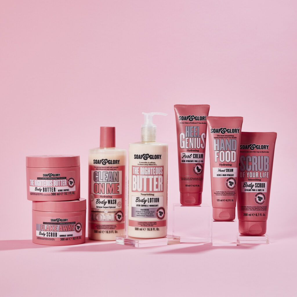 Soap & Glory ขยายประสบการณ์ความงามแบบองค์รวมภายใต้กลิ่นซิกเนเจอร์เดียวกัน ผ่านผลิตภัณฑ์ดูแลร่างกายและเส้นผมที่ครอบคลุมทุกขั้นตอน ตั้งแต่การทำความสะอาด บำรุง ไปจนถึงการเสริมความมั่นใจในชีวิตประจำวัน อาทิ Clean On Me™ Body Wash, Flake Away™ Body Scrub, The Righteous Butter™, Original Pink™ Fragrance Spritz และกลุ่มผลิตภัณฑ์ดูแลเส้นผม Glad Hair Day™