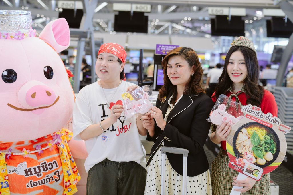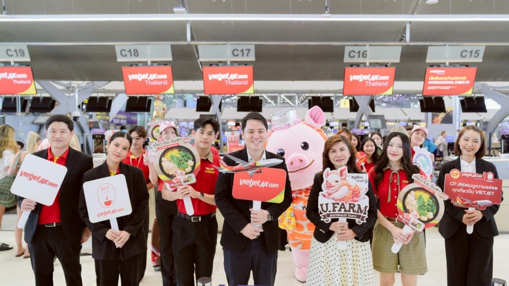 เวียตเจ็ทไทยแลนด์ เปิดตัวเมนูใหม่ “ก๋วยเตี๋ยวเรือหมูชีวา” (Cheeva Thai Boat Noodle) ที่พัฒนาร่วมกับ บริษัท เจริญโภคภัณฑ์อาหาร จำกัด (มหาชน) หรือซีพีเอฟ นำเสนอตัวเลือกมื้ออาหารบนเที่ยวบินที่อร่อยและมีคุณค่าทางโภชนาการสูงแก่ผู้โดยสาร ด้วยการเลือกใช้วัตถุดิบเนื้อหมูชีวา ที่อุดมไปด้วยโอเมก้า 3 จากการเลี้ยงดูด้วยอาหารสูตรพิเศษ (Superfoods) ปราศจากสารเร่งเนื้อแดงและยาปฏิชีวนะ เพื่อยกระดับการให้บริการบนเที่ยวบิน นำเสนอเมนูใหม่ เพิ่มความหลากหลาย ควบคู่ไปกับการรักษามาตรฐานด้านคุณภาพและความสะดวกสบายสำหรับผู้โดยสาร โดยได้รับเกียรติจาก คุณภูเบศ กิตติญาณปัญญา รองผู้อำนวยการฝ่ายการพาณิชย์ สายการบินเวียตเจ็ทไทยแลนด์ และ คุณศุภรา ศรีบูรณ์ ผู้อำนวยการ ธุรกิจการค้าในประเทศ ซีพีเอฟ ร่วมเปิดตัวเมนูใหม่ พร้อมมอบผ้าปิดตาหมูชีวาเป็นของที่ระลึกแก่ผู้โดยสาร ณ ท่าอากาศยานสุวรรณภูมิ