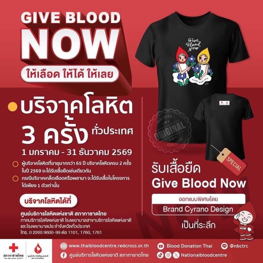 บริษัท เดอะ แพลทินัม กรุ๊ป จำกัด (มหาชน) ร่วมกับศูนย์บริการโลหิตแห่งชาติ สภากาชาดไทย ขอเชิญทุกท่านร่วมทำความดี บริจาคโลหิต ในโครงการ “เดอะ แพลทินัม Give Blood Now ให้เลือด ให้ได้ ให้เลย” ให้กับศูนย์บริการโลหิตแห่งชาติ เพื่อนำไปช่วยเหลือผู้ป่วยโรคเลือดและผู้ที่ต้องการโลหิตในการรักษา โดยสามารถร่วมบริจาคโลหิตได้ในวันที่ 12 มีนาคม 2569 เวลา 11.00 – 15.00 น. ณ บริเวณใต้อาคารทางเข้าชั้น G ประตู 5 ศูนย์การค้าเดอะ มาร์เก็ต แบงคอก สำหรับผู้บริจาคโลหิตภายในปี 2569 ครบ 3 ครั้ง จะได้รับเสื้อ T-Shirt ที่ออกแบบโดยศิลปินที่มีชื่อเสียงให้เป็นที่ระลึกจากศูนย์บริการโลหิตแห่งชาติ ติดตามรายละเอียดที่น่าสนใจเพิ่มเติม ได้ใน Facebook : The Market Bangkok