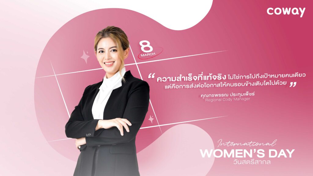 เนื่องในโอกาส International Women’s Day Coway ต้องการสะท้อนให้เห็นว่าความสำเร็จขององค์กรไม่ได้เกิดจากผู้หญิงเก่งเพียงไม่กี่คน แต่เกิดจากผู้หญิงธรรมดาจำนวนมากที่กำลังสร้างความเปลี่ยนแปลงในแบบของตนเอง ภายใต้องค์กรที่เชื่อในศักยภาพของผู้คน และเลือกที่จะเติบโตไปพร้อมกันอย่างยั่งยืน เพราะองค์กรที่แข็งแรงไม่ได้วัดจากขนาดเพียงอย่างเดียว แต่ยังวัดจากจำนวนคนที่เติบโตขึ้นภายในองค์กรนั้นด้วย