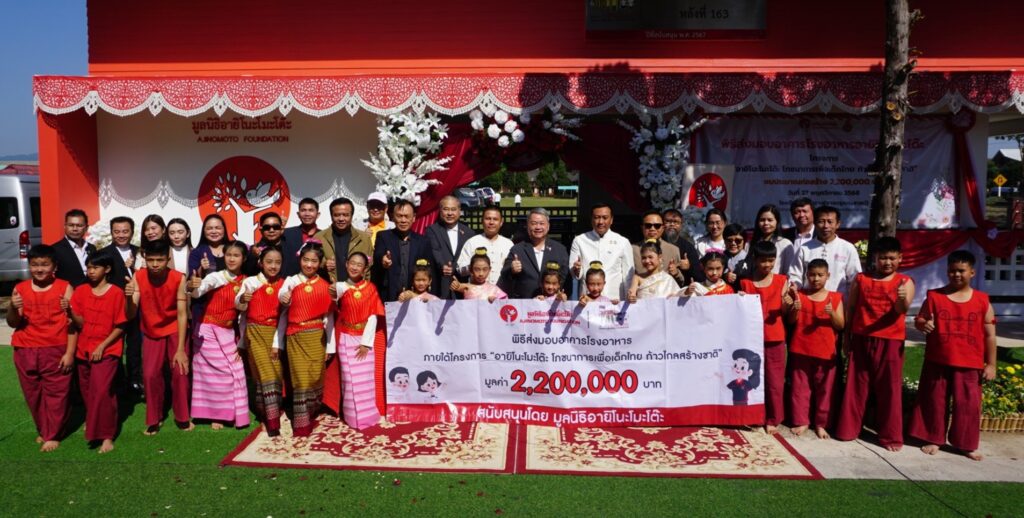 สำหรับความร่วมมือระหว่างมูลนิธิอายิโนะโมะโต๊ะและ สำนักงานคณะกรรมการการศึกษาขั้นพื้นฐาน (สพฐ.) ดำเนินงานอย่างต่อเนื่องมาตั้งแต่ปี พ.ศ. 2524 จากการสนับสนุนโครงการอาหารกลางวันและโภชนาการแก่โรงเรียนทั่วประเทศกว่า 636 แห่ง ก่อนต่อยอดสู่โครงการก่อสร้างอาคารโรงอาหารที่ได้มาตรฐาน ควบคู่กับการพัฒนาองค์ความรู้เพื่อยกระดับการจัดการอาหารกลางวันและโภชนาการในโรงเรียนให้มีประสิทธิภาพมากขึ้น ตั้งแต่ปี พ.ศ. 2553 เป็นต้นมา จนถึงปัจจุบัน มูลนิธิฯ ได้สนับสนุนงบประมาณก่อสร้างโรงอาหารแล้วกว่า 215 ล้านบาท และส่งมอบอาคารโรงอาหารมาตรฐานแล้ว 180 แห่ง ใน 77 จังหวัด ครอบคลุม 167 เขตพื้นที่การศึกษาจากทั้งหมด 183 เขตทั่วประเทศ ช่วยให้นักเรียนกว่า 50,000 คน มีสถานที่รับประทานอาหารที่สะอาด ปลอดภัย และถูกสุขลักษณะ
