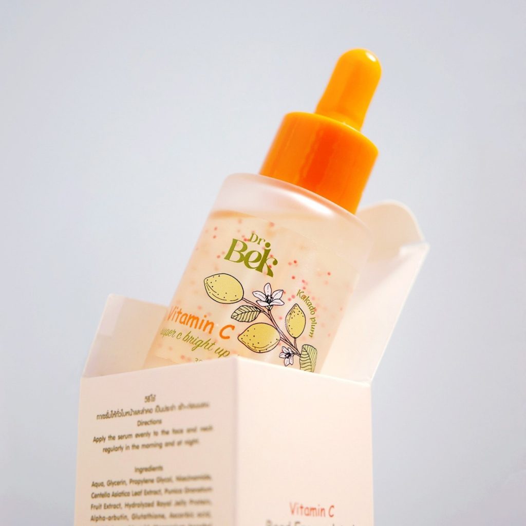 เติมความไบรท์ให้ผิวสู้แดดอีกขั้นด้วย Dr.Bek Vitamin C Super C Bright Up Serum (ด๊อกเตอร์ เบค วิตามิน ซี ซูเปอร์ ซี ไบร์ท อัพ เซรั่ม) เซรั่มวิตามินซีเข้มข้น คัดสรรสารสกัดจาก Kakadu Plum แหล่งวิตามินซีธรรมชาติสูงที่สุด ช่วยบูสต์ผิวกระจ่างใสในรูปแบบเม็ดบีดส์ บำรุงลึกถึงระดับเซลล์ พร้อมปรับสมดุลผิวให้เรียบเนียน ลดการระคายเคือง เหมาะกับทุกสภาพผิวที่ต้องการความโกลว์ จำหน่าย ขนาด 30 ml ราคาขวดละ 420 บาท
